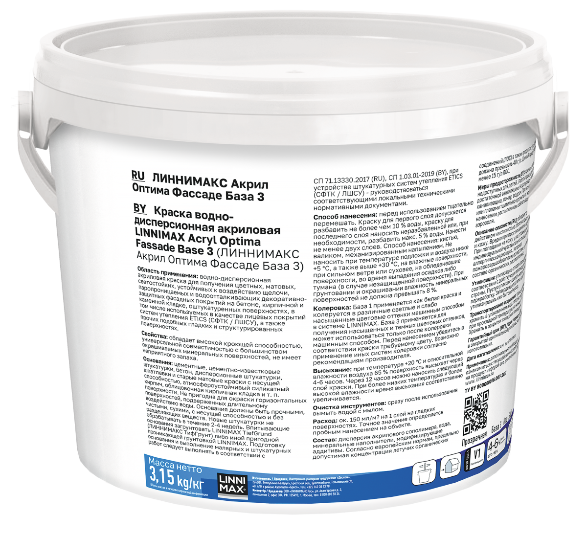 Продукт предназначен для компьютерной колеровки в системе LINNIMAX. Перед применением рекомендуется проверить точность цветового тона.
