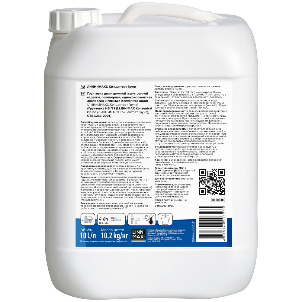 LINNIMAX KONZENTRAT GRUND - это специальный концентрат грунтовки глубокого проникновения, разработанный для внутренних и наружных работ. Применяется исключительно в разбавленном виде для улучшения адгезии последующих защитно-отделочных покрытий.