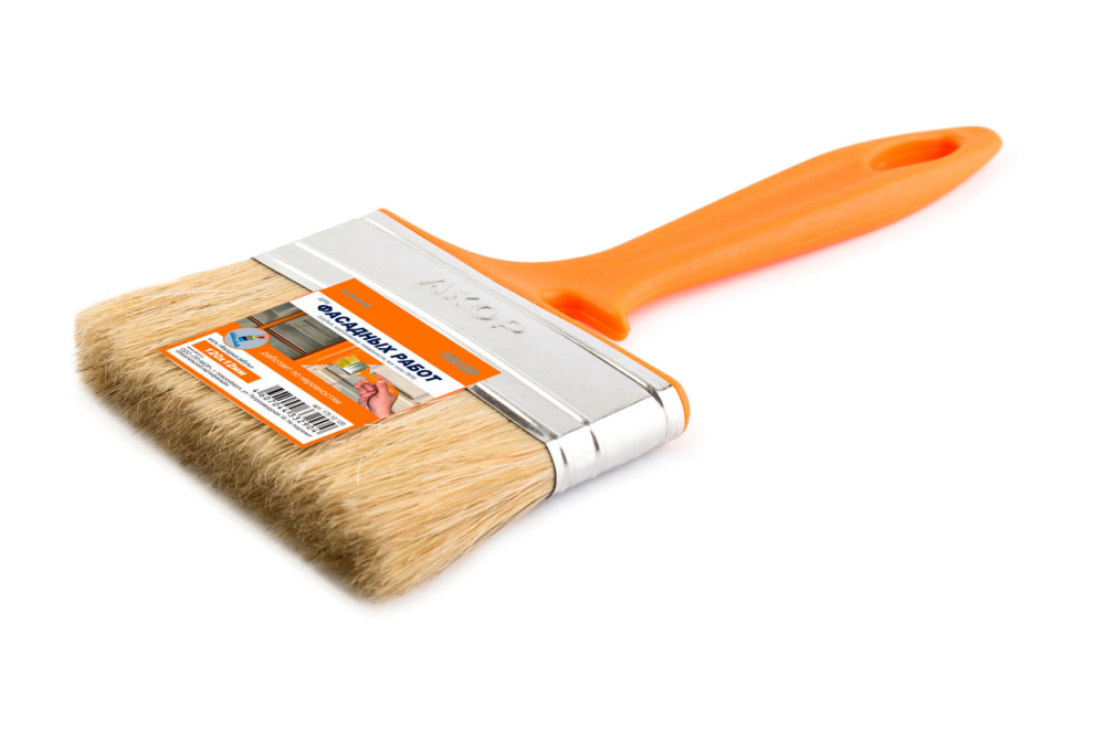 АКОР ФАСАД Кисть плоская для фасадных работ предназначена для грунтовки и окраски больших поверхностей, а также покрытия небольших участков лаком.