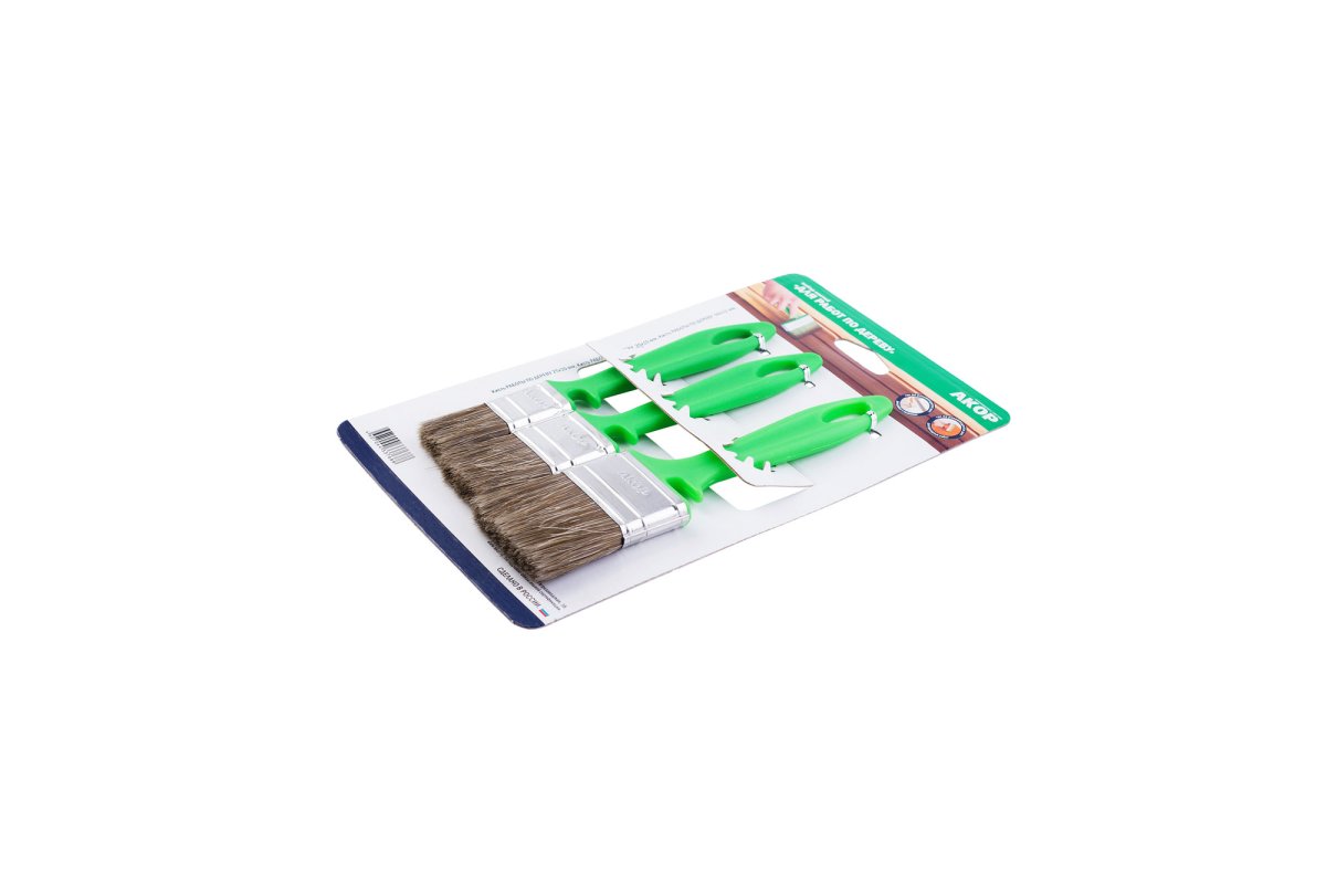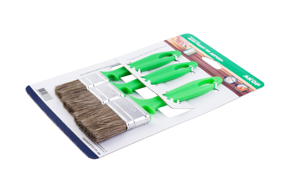 Набор малярных кистей Акор предназначен для работы с деревом. Он идеально подходит для окрашивания, грунтовки и покрытия лаком различных поверхностей.