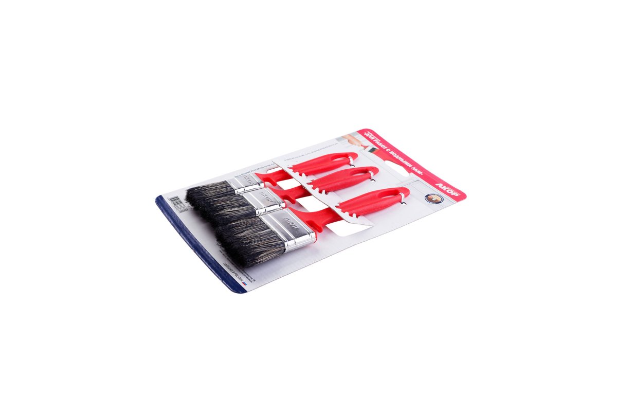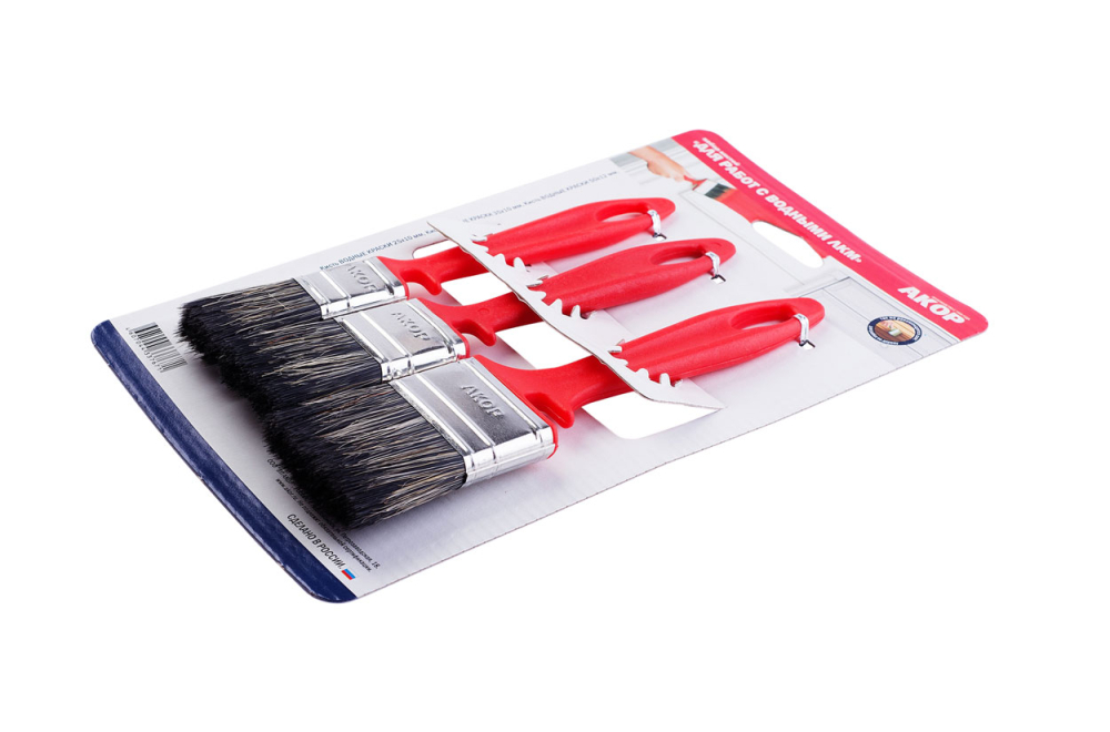 Акор набор малярных кистей для работы с водными красками предназначен для нанесения лакокрасочных материалов на различные поверхности: металл, дерево, бетон и т.д.