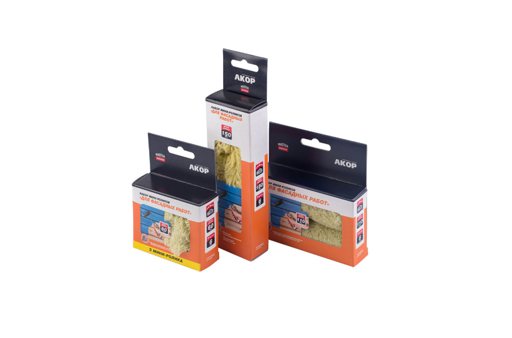 Мини-ролики АКОР предназначены для фасадных работ на неровных и грубых поверхностях.