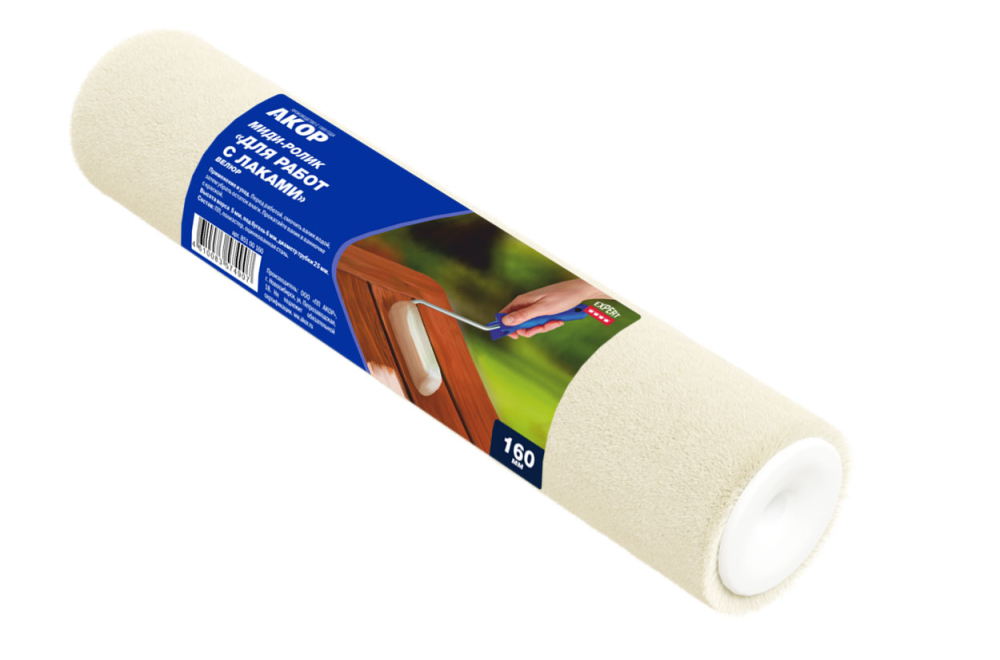 АКОР ролик миди для работ с лаками велюр предназначен для нанесение лаков на любые поверхности тонким слоем.