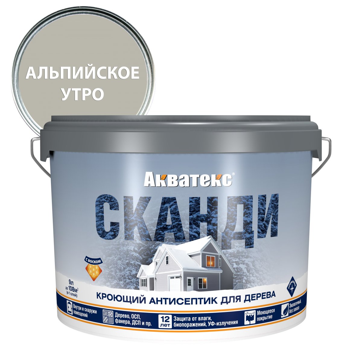 Кроющий антисептик для дерева Акватекс Сканди подходит, когда нужен укрывистый слой и защита в одном продукте.