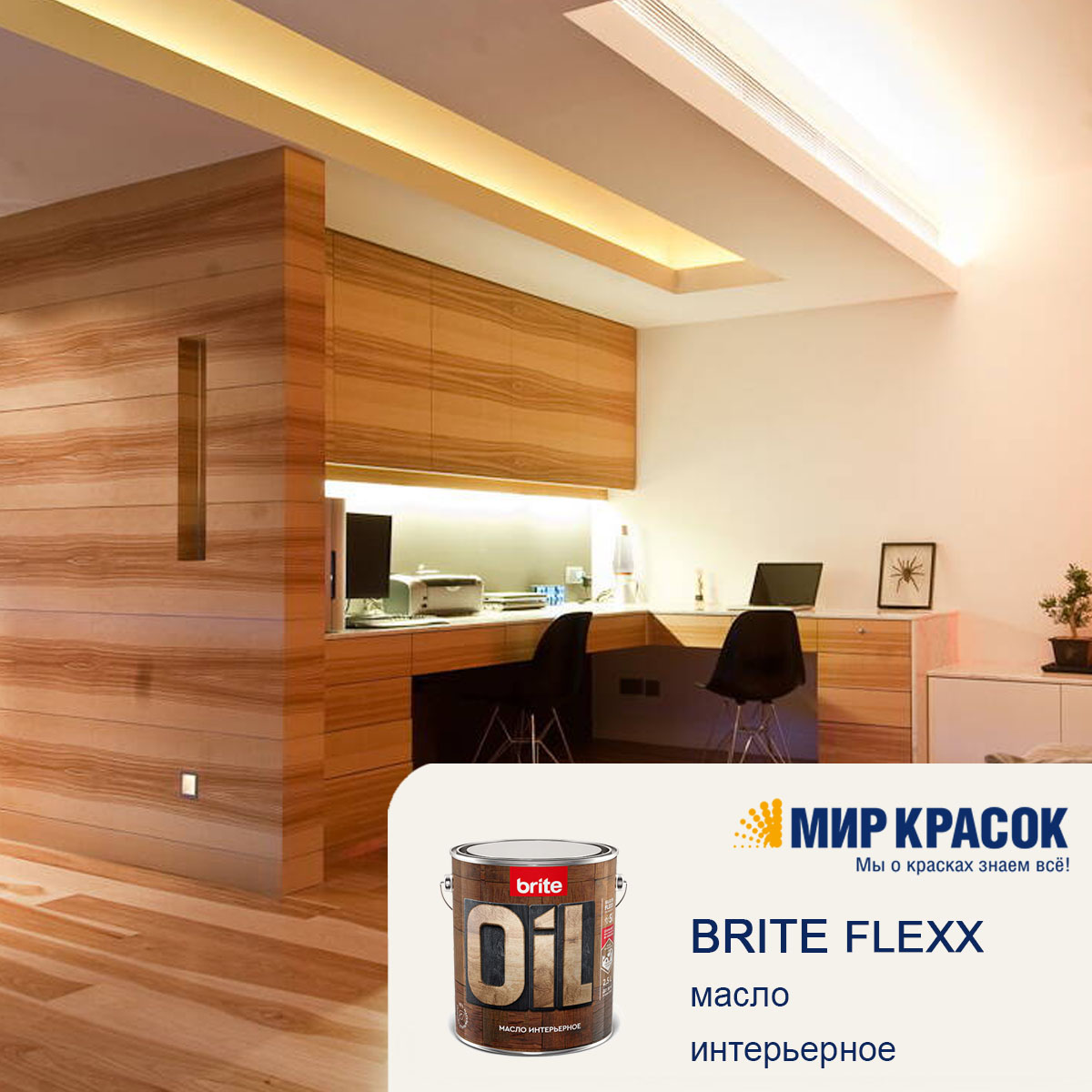 Масло интерьерное Brite® Flexx отлично впитывается в дерево, не образуя видимой пленки, что позволяет сохранить визуально ощущение натуральной древесины. Подходит для всех пород древесины, после высыхания не меняет естественный оттенок дерева. Изготовлено исключительно из натуральных компонентов. Образует водо- и грязеотталкивающее покрытие. Масло интерьерное препятствует появлению царапин, легко наносится и подчеркивает текстуру, природную красоту дерева.