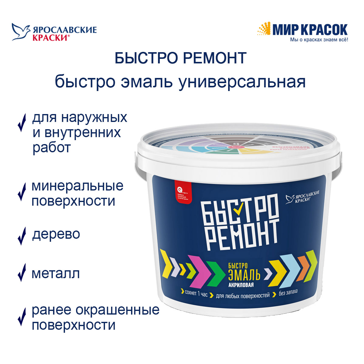 Быстроэмаль на основе акриловой дисперсии безопасна для окружающей среды и здоровья человека. Ее покрытие обладает высокой прочностью и качественным сцеплением с поверхностями, в том числе ранее окрашенными алкидными и водными эмалями. После высыхания образует идеально гладкое шелковисто-матовое покрытие, устойчивое к воздействию бытовых моющих средств.