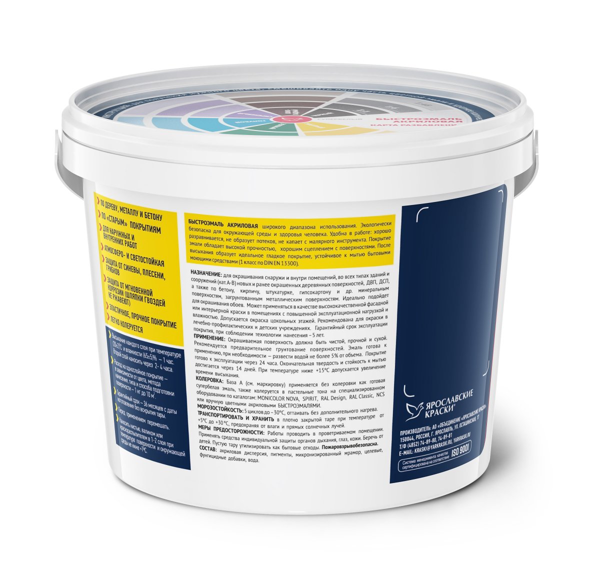 Супербелая Быстроэмаль колеруется цветными Быстроэмалями в соответствии с картой разбелов на упаковке, а также универсальными колеровочными пастами Ярославские краски (не более 5%).
