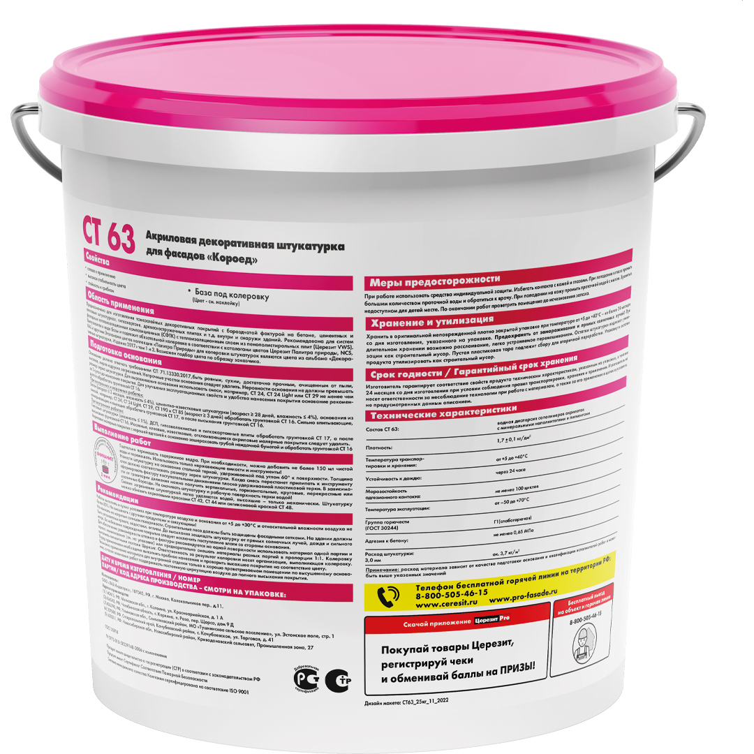| Цветовая палитра | колеруется в соответствии с каталогами цветов ceresit палитра природы, ncs и ral | |