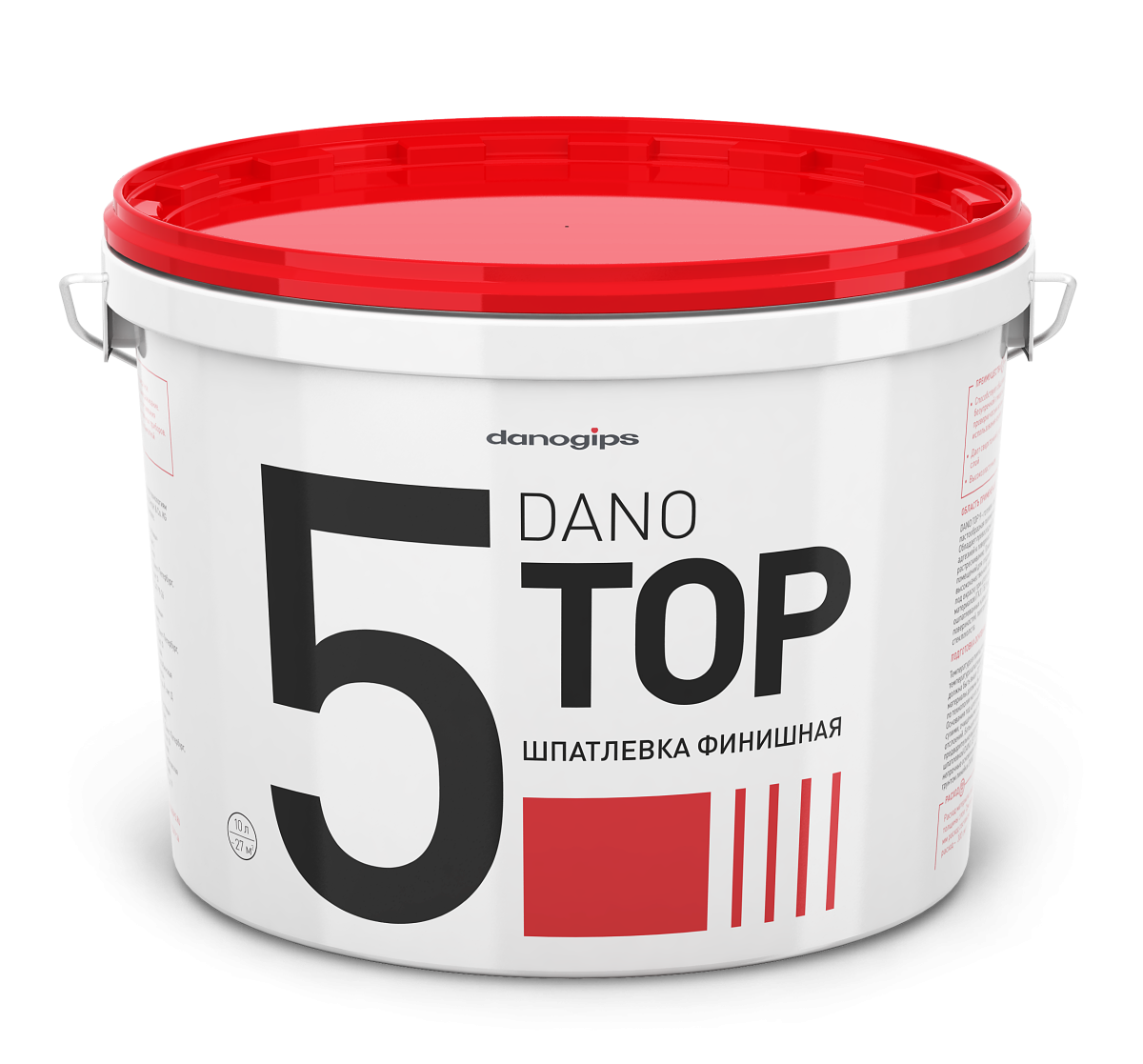 DANO TOP 5 Danogips – готовая к применению финишная пастообразная полимерная шпатлевка. Применяется в сухих помещениях для подготовки основания под высококачественную отделку, в том числе оклейку тонкими/светлыми обоями и окраску. Подходит для финишного выравнивания листовых материалов, ранее ошпатлеванных или окрашенных поверхностей, пазогребеневых плит, стеклохолста и др.