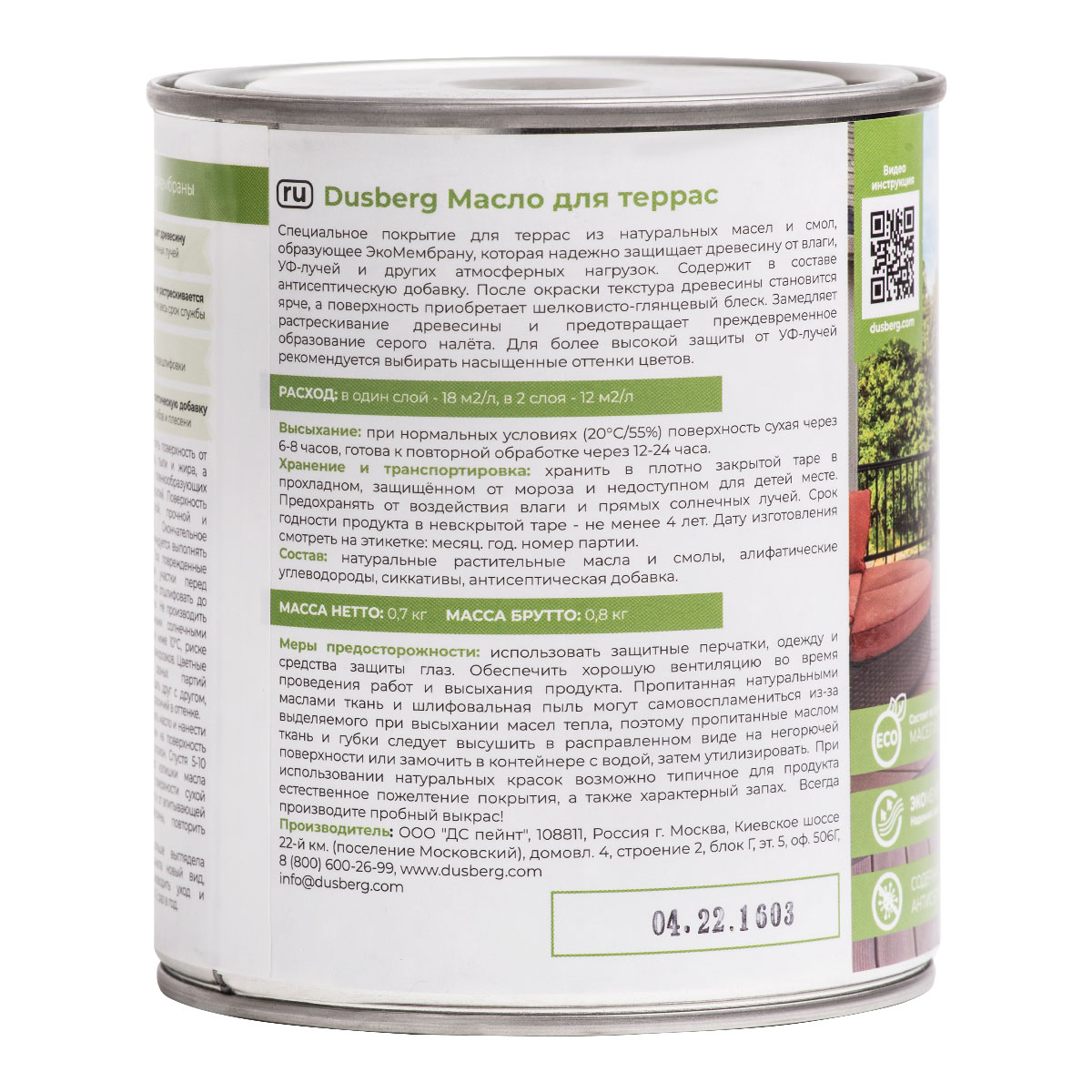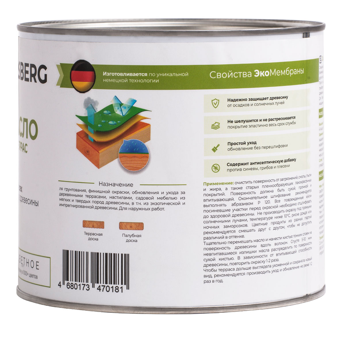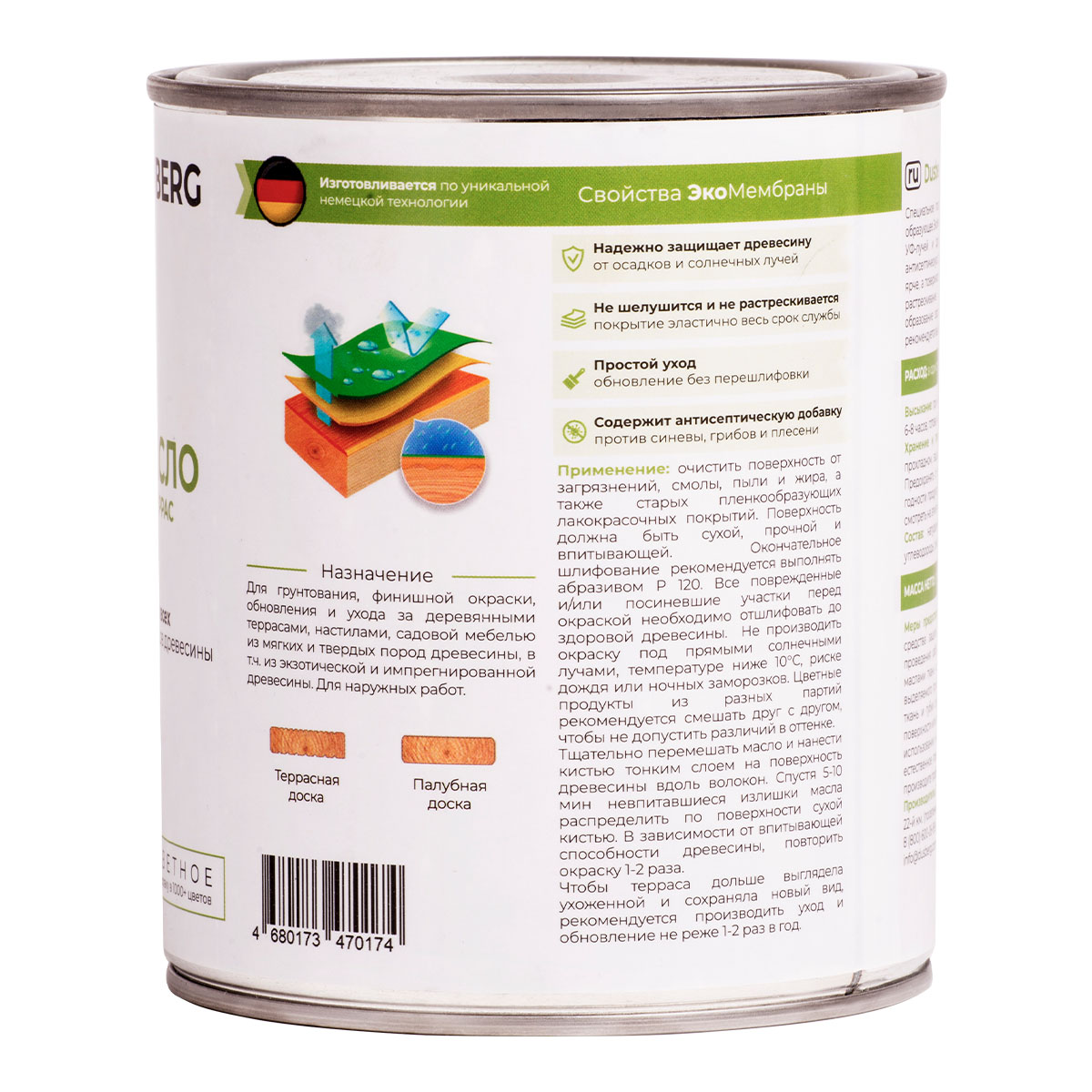 Масло для наружных работ. Предназначено для окраски, обновления и ухода за деревянными террасами, настилами, садовой мебелью из мягких и твердых пород древесины, в том числе из экзотической и импрегнированной древесины.