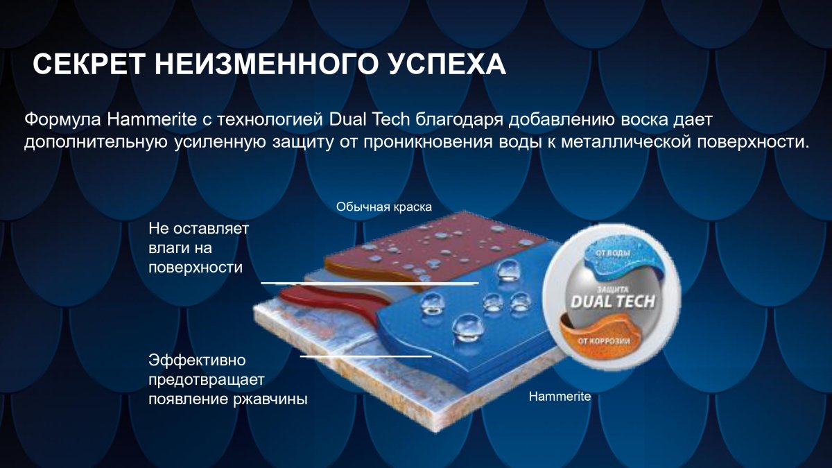 Краска образует покрытие, которое имитирует чеканку молотком вручную. Эффект достигается за счет алюминиевых хлопьев в составе — они создают характерный узор. Если на поверхности есть неровности, эмаль скроет их. Если нужно подкрасить поврежденные места уже нанесенного покрытия, подкрасы будут незаметны. Специализированные силиконы в составе способствуют стабилизации фактурного узора и отталкиванию влаги. Готовое покрытие выдерживает температуру до +80 градусов.