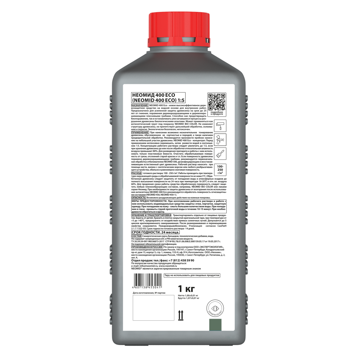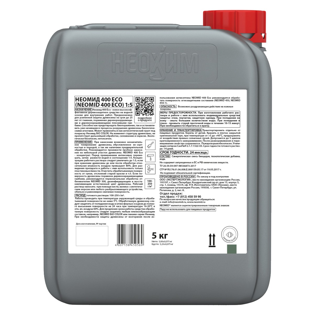 NEOMID 400 ECO — новое высокоэффективное деревозащитное средство на водной основе для внутренних работ. Предназначено для усиленной защиты древесины на срок до 25 лет от гниения, поражения дереворазрушающими и деревоокрашивающими плесневыми грибам.