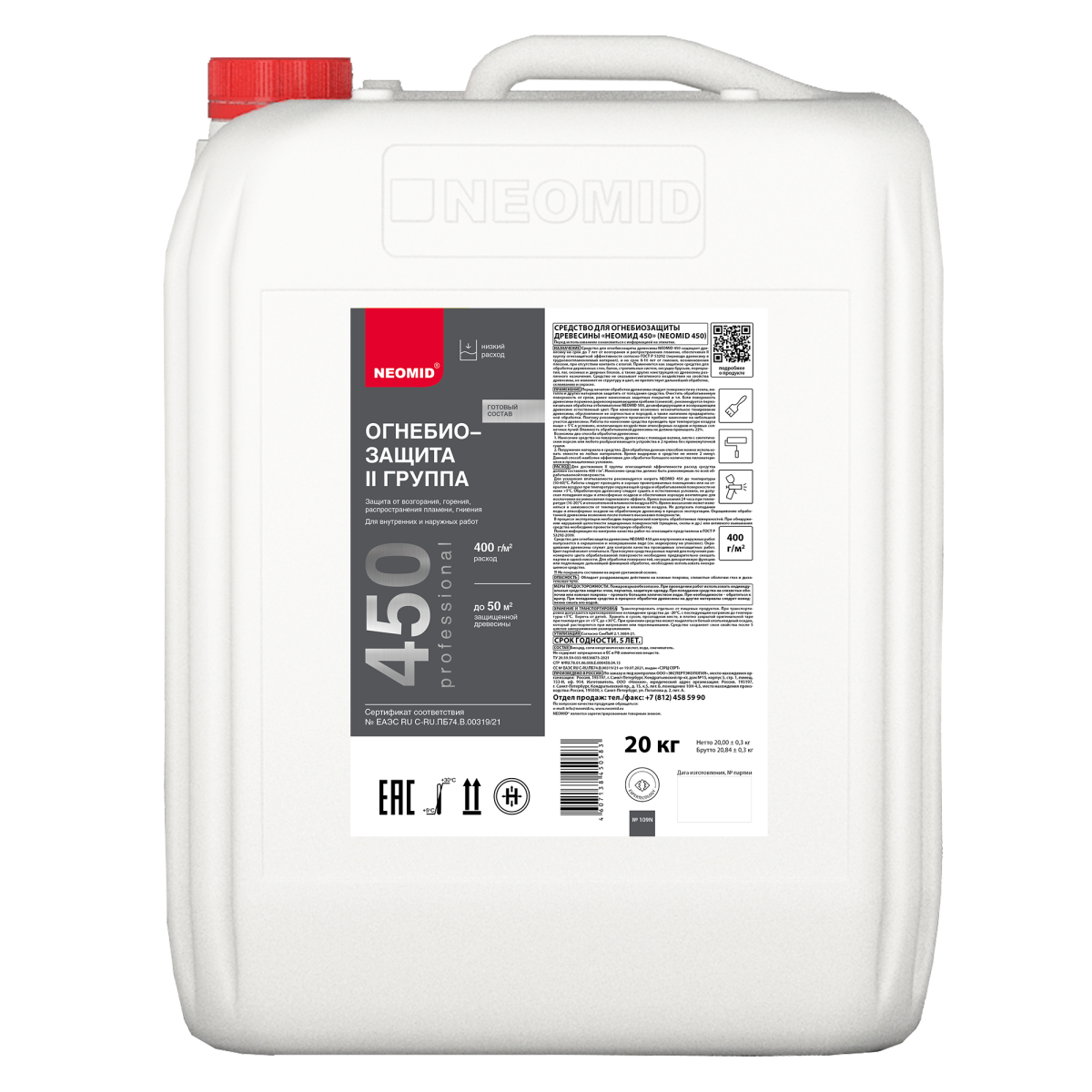 РАСХОД: Для достижения II группы огнезащитной эффективности расход средства должен составлять 400 г/м2. Нанесение раствора должно быть равномерным по всей обрабатываемой поверхности. Для ускорения впитываемости рекомендуется нагреть NEOMID 450 до температуры (50-60)°С. Работы следует проводить в хорошо проветриваемых помещениях или на открытом воздухе при температуре окружающей среды и обрабатываемой поверхности не ниже +5°С. Обработанную древесину следует защитить от попадания воды и атмосферных осадков до полного высыхания поверхности, на 24 часа при температуре 16-20°С и относительной влажности воздуха 60%. В процессе эксплуатации необходим периодический контроль обработанных поверхностей. При обнаружении нарушений целостности защищенных поверхностей (трещины, сколы и др.) или активного вымывания средства необходимо провести повторную обработку.