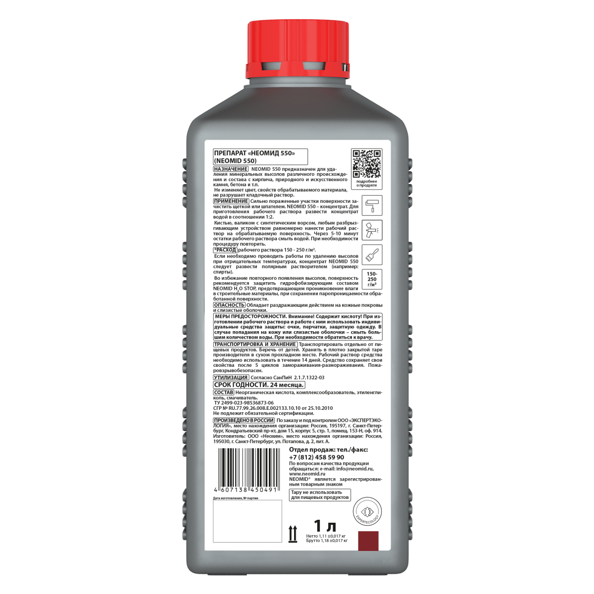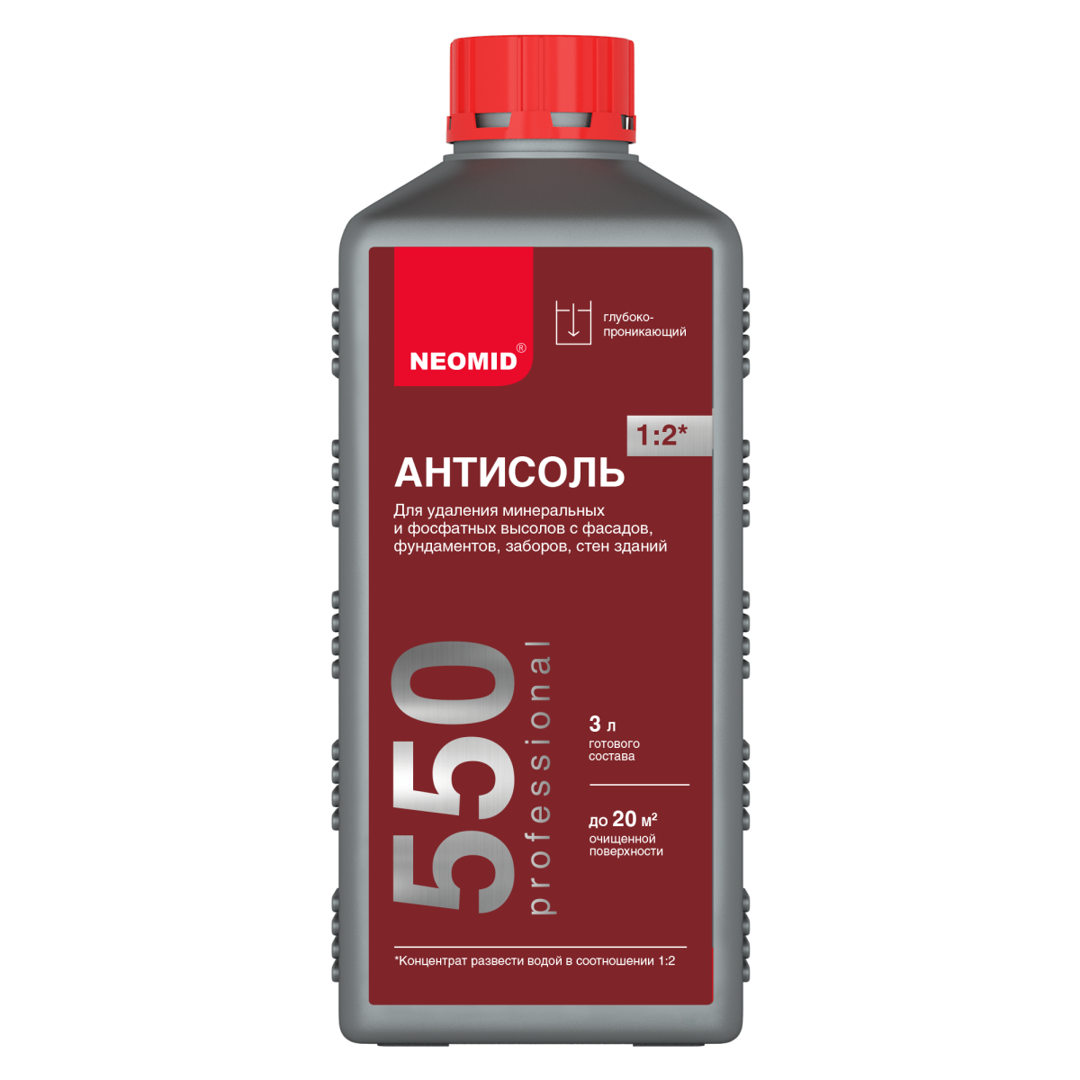 NEOMID 550 предназначен для удаления минеральных высолов различного происхождения и состава с кирпича, природного и искусственного камня, бетона и т.п.