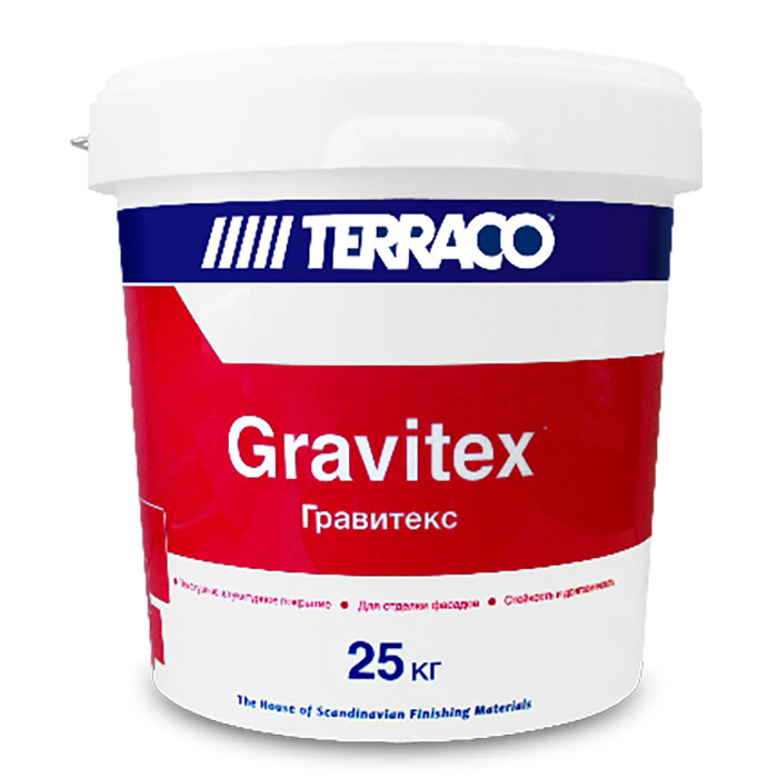 Декоративное покрытие на акриловой основе с мелкой текстурой типа «шагрень». Гравитекс Микро (G) – бюджетный вариант готового к применению рельефного покрытия на акриловой основе с мелкой текстурой типа «шагрень». Характеризуется экономичностью и простотой нанесения в сочетании с отличными техническими характеристиками: превосходной адгезией, прочностью, повышенной эластичностью, устойчивостью к ультрафиолету, образованию плесени и грибка, что в совокупности обеспечивает материалу высокую долговечность. Гравитекс Микро (G) может наноситься при отделке фасадов и внутренних помещений как на новые, так и на старые поверхности цементосодержащих плит, выравнивающих штукатурок, гипсокартона, плоского шифера, а также быть непосредственно нанесено на стены из бетона, кирпича, в том числе силикатного, ячеистого бетона подготовленных с применением соответствующих материалов Террако.