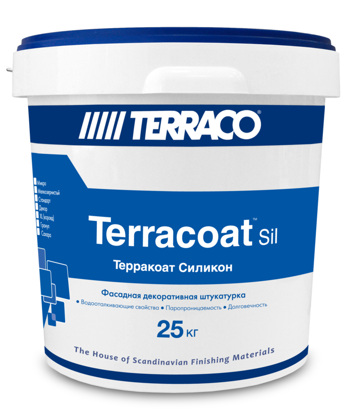 Терракоат Силикон выпускается в пластиковых ведрах по 25кг. Храните материал в чистом сухом помещении, защищенном от прямых солнечных лучей, а также сильной жары или холода. Нераскрытые ведра могут храниться в течение 24 месяцев. В первую очередь используйте материал с более ранней датой выпуска. В перерывах между нанесением материала следует плотно закрывать ведро крышкой.