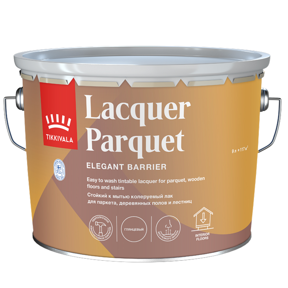 Глянцевый алкидно-уретановый лак. Используется для защитно-декоративной лакировки паркетных и деревянных полов, лестниц, а также элементов мебели внутри помещений.