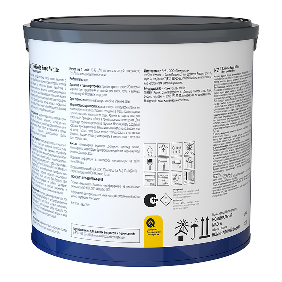 Материал «боится» мороза. Хранят, транспортируют Euro White при температуре не ниже 5оС. Заводская упаковка должна быть герметична или плотно закрыта. На краску не должно воздействовать прямое солнце, влага или тепло. В невскрытой таре она сохраняет все свои свойства в течение 3 лет с даты изготовления.