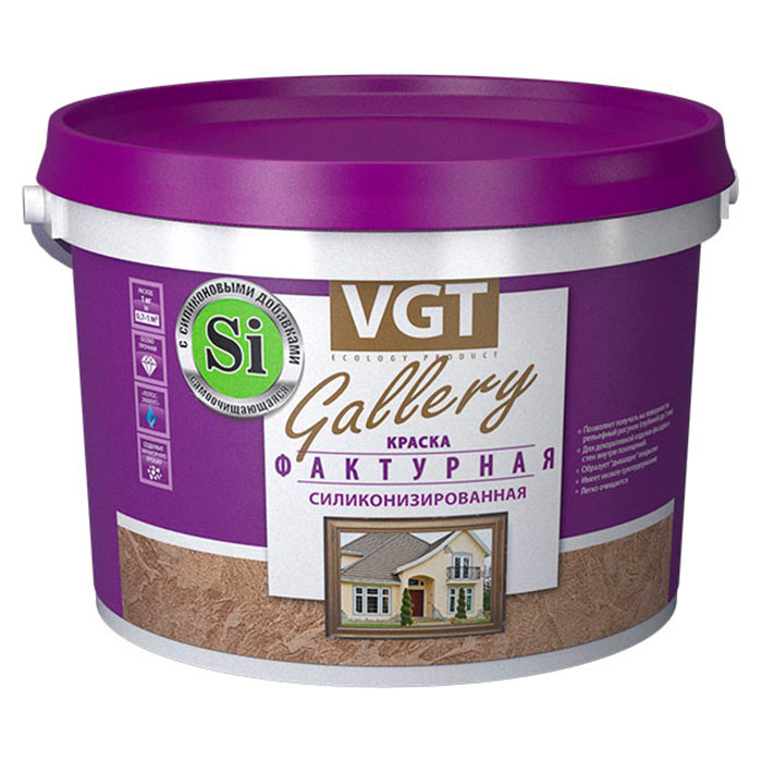 VGT GALLERY краска фактурная на основе стирол-акрилового связующего используется в наружных и внутренних работах.