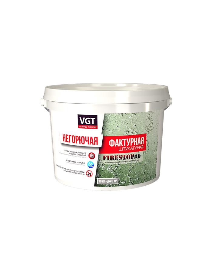 Штукатурка представляет собой однородную вязкую грубодисперсную массу. Применяется в помещениях с повышенными требованиями к пожарной безопасности для окраски минеральных оснований (известковых, известково-цементных, цементно-песчаных штукатурок и шпатлевок, кирпичей, бетона и других оснований, кроме гипса). Практически без запаха. Образует прочное матовое влагостойкое покрытие с глубиной рельефа до 2 мм. Класс пожарной опасности КМ0.