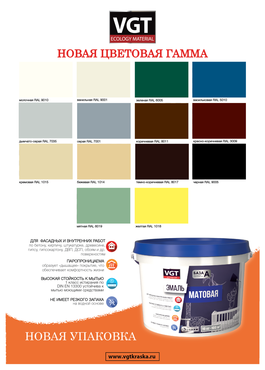 | Цветовая палитра | колеруется согласно каталогу VGT | |