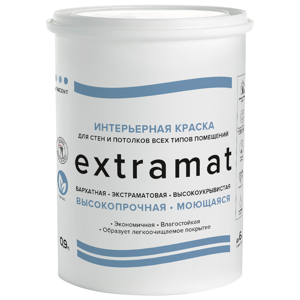 Vincent Extramat - экстраматовая водно-дисперсионная краска с антибактериальным комплексом для стен и потолков. Образует полуматовое, легко очищаемое, обладающее высокой белизной и влагостойкостью покрытие, устойчивое к обычно применяемым водным растворам моющих средств, сухому и мокрому трению.