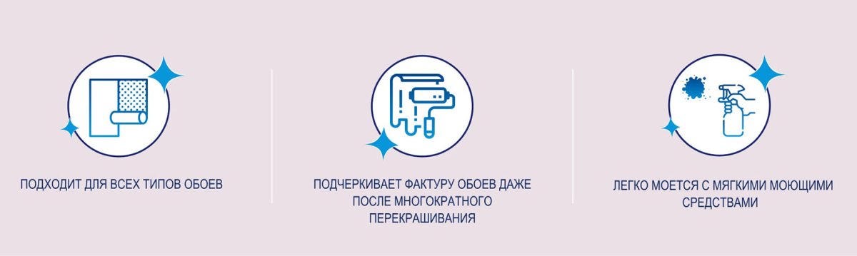 Матовая водно-дисперсионная краска для обоев и стен. Легко наносится на любые типы обоев, в том числе обои не под покраску (бумажные, виниловые и т. п.). Сертифицирована для применения в детских и лечебно-профилактических учреждениях.