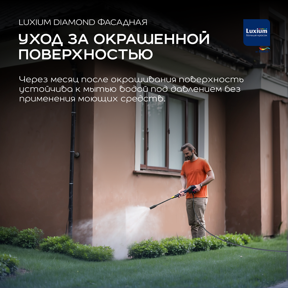 Для наружных работ. Подходит для нанесения на полностью просохшие минеральные поверхности (бетон, штукатурка, кирпич, каменная кладка), а также деревянные поверхности. Рекомендуется для окрашивания фасадов жилых и общественных зданий в любых климатических зонах.